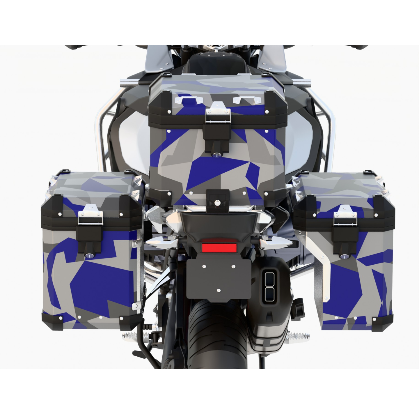 For side cases - contains a set of wraps for the two side panniers of the motorcycle.