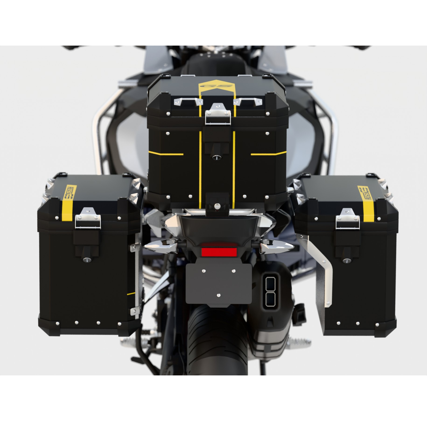 Na Komplet fabrycznych kufrów bocznych + centralny – zawiera zestaw na fabryczny komplet tych samych kufrów jednego producenta (boczne + centralny)