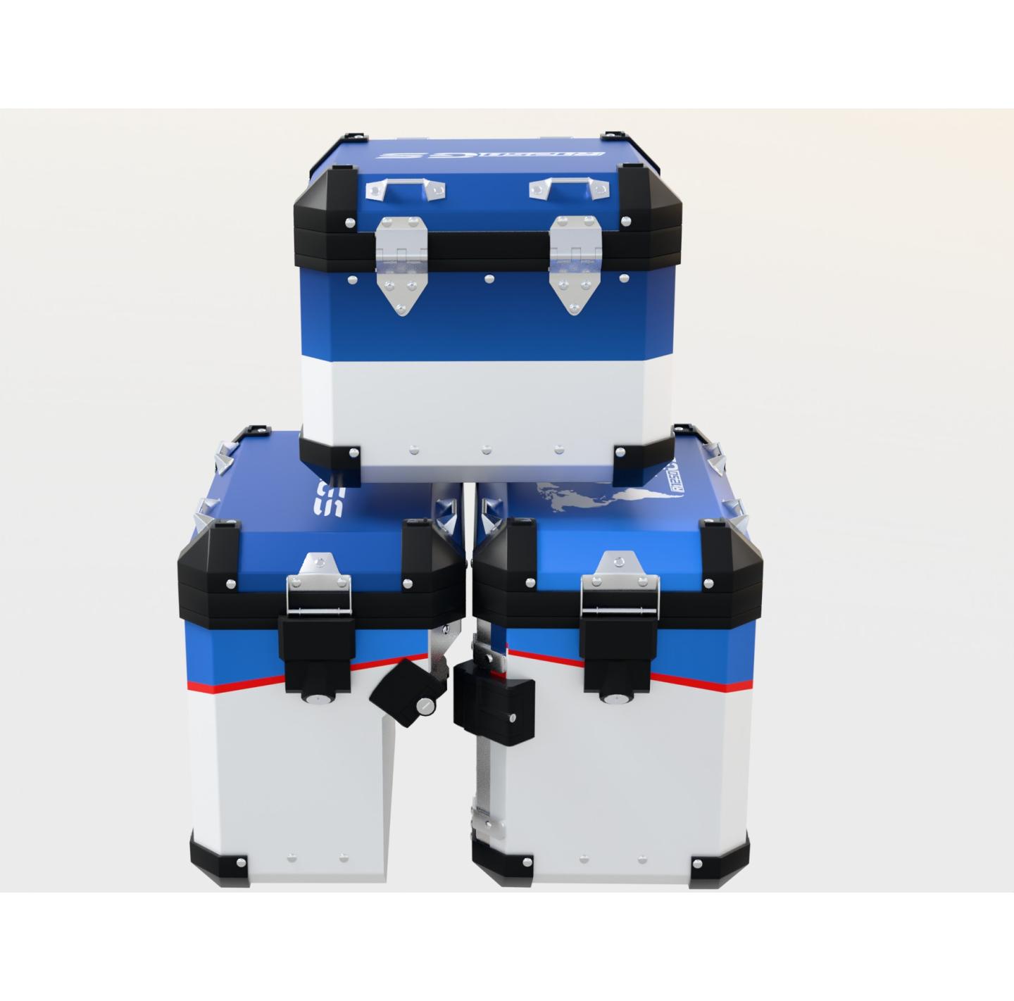 Na Komplet fabrycznych kufrów bocznych + centralny – zawiera zestaw na fabryczny komplet tych samych kufrów jednego producenta (boczne + centralny)